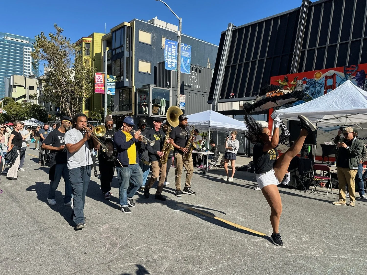 In 2024, we partnered with Into the Streets to develop Saturdays in the City, a program to activate commercial corridors on Hayes, Valencia, and Faxon Ave (near Ocean) with music and kids’ activities, like the successful Valencia Beach Blocks program we ran in 2023.